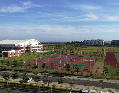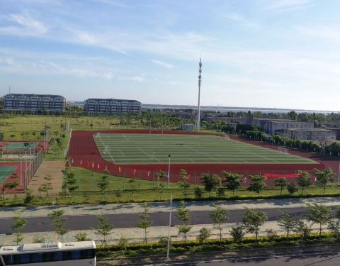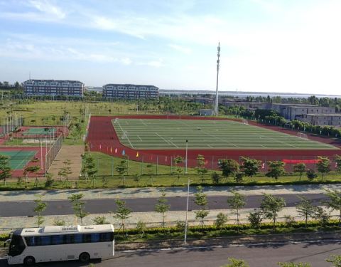 宝钢湛江钢铁在湛江东海岛上,离市区有五十公里。这里没有什么娱乐设施。湛江钢铁年轻人比较多,平均年龄只有二十五六岁。年轻人住在厂区东边年轻的荷尔蒙需要释放,于是修建了足球场篮球场体育馆等等的健身设施。给年轻人以发泄、锻炼的地方。湛江这里天气太热,紫外线太强。白天基本上没有人,晚上比较热闹来踢球的员工比较多。单位也经常组织一些比赛。早晚散散步运动一下还是不错的选择