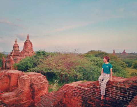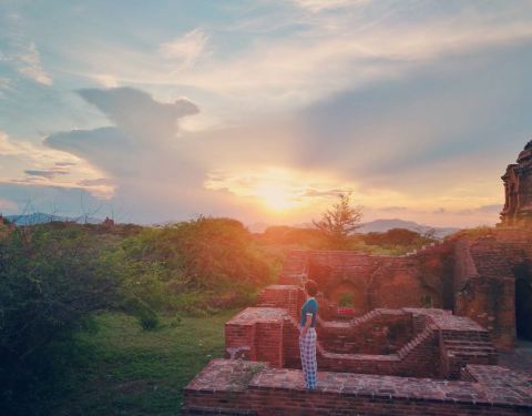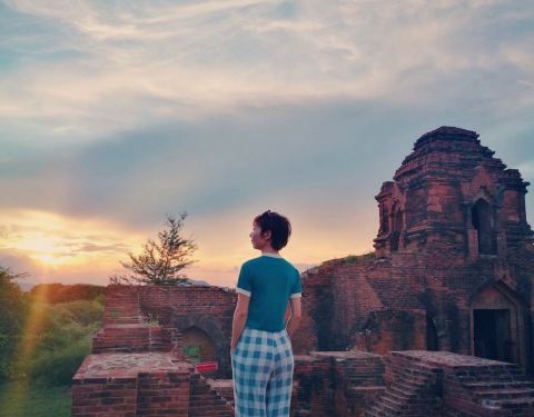 位置在老蒲甘和新蒲甘的大路边上,更靠近新蒲甘,其实这个佛塔本身没什么特别,但是它旁边有一块遗迹,都是剩的残垣断壁,但却特别适合照相。最好是傍晚时分来,光线柔和,还可以看个日落晚霞啥子的。