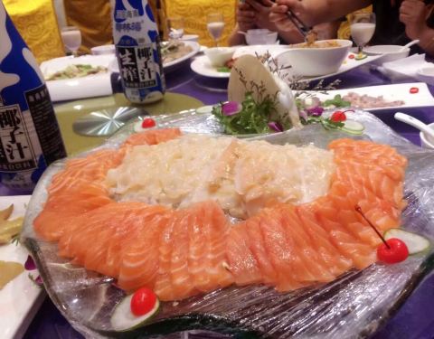 ...盘】因为提前预定过, 【象拔蚌店家特地从海鲜市场进过来,超级嫩,三文鱼也很鲜嫩,满满一大盆好吗