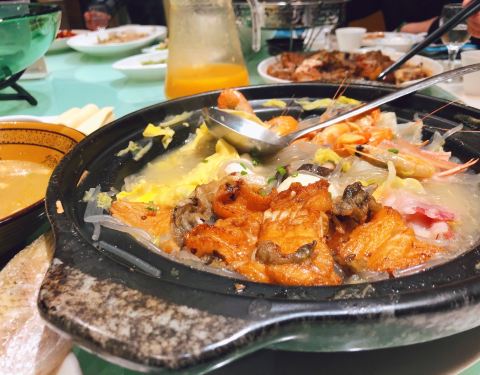 【吃海鲜来港湾】 三季度公司业绩不错,中午不用吃食堂,领导请在港湾酒店大餐一顿。我们公司在宝山沪太路,开过来15分钟,过了洋桥收费站五分钟就到了。 来浏河就是要吃河鲜海鲜,点了店里的招牌【红烧河豚鱼】,当然还有【象拔蚌三文鱼刺身拼盘】,这里的菜量大,又实惠,比较下来上海的饭店性价比真的是不高。 【红烧河豚鱼】从来没吃过河豚,来浏河怎么能不吃河豚!但是还是有点害怕…选了红烧,没有选汤,感觉更安全点…肉很嫩个,下面是草头垫底,浓郁的汤汁衬得草头也鲜美无比!本人词穷,不知道用什么词语描述,反正没吃过的一定要尝一下! 【象拔蚌三文鱼刺身拼盘】因为提前预定过, 【象拔蚌店家特地从海鲜市场进过来,超级嫩,三文鱼也很鲜嫩,满满一大盆好吗!和日料店那两三片就要一百多真的是值翻了好吗! 环境是偏欧式的,有很多大大小小的包房,我们坐的是最大的18人的大包房,这里很适合家庭聚餐和商务宴请。最重要的是性价比很高!