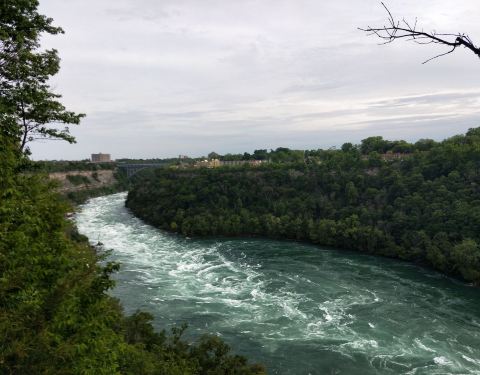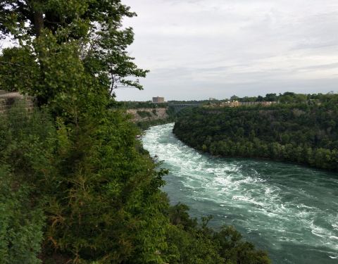 说过桥是一座连接美国跟加拿大边境的桥梁,还是相当可以的,毕竟这边的桥虽然没有什么特色,都是这样子,横跨的一些拱桥铁桥,下面就是波涛汹涌的里亚加拉河,游到这里,中间会有一个比较大型的漩涡。 从漩涡公园...