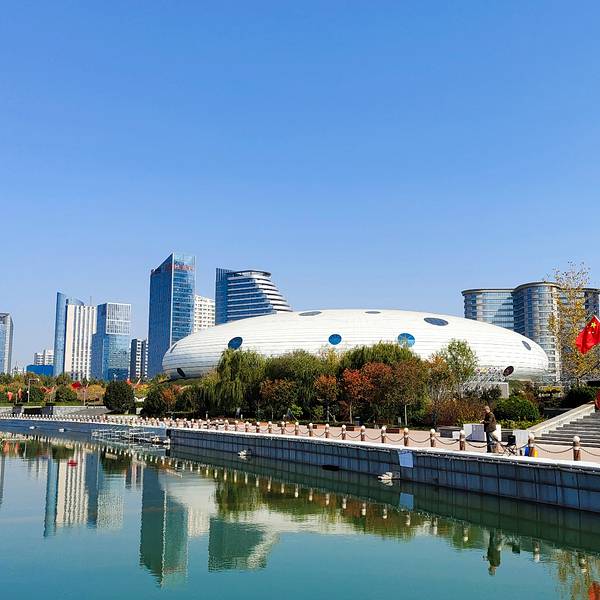 上午十点半来到鹤壁淇河江畔游览,这一带风景秀美,淇河金沙滩、鹤壁会展中心都给我们留下了深刻的印象