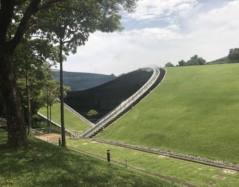 南洋理工大学的著名建筑。又称小笼包。外观上看起来像一摞小笼包子。当天特意从vivo city坐地铁在换公交到了南洋理工大学。环境真是好。走了大概半个小时就看见了。里面一层好像是个学生食堂,没看的太清楚,因为有点暗。反正这地方来打个卡就ok了。真的羡慕南洋理工大学的学生能在这么好的环境下读书,当然了,也都是精英了!