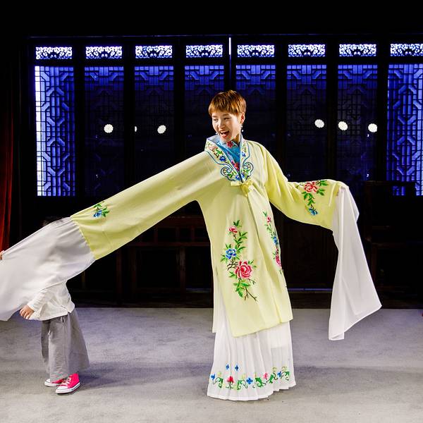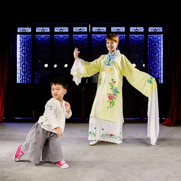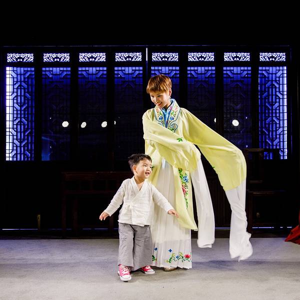 从西游客中心出发,我们先走了一段 平江 路。 平江 路和拙政园很近,上一次来因为下雨没有细逛。印象中 平江 路太过于商业化,但却没想到小朋友却很喜欢,路边拉姜糖、敲棒锤糖,肉哥一个不落都要看。 一小段 平江 路过后是金谷里艺术馆。之前我们没仔细做过功课,都不知道原来在 平江 路胖还有这样一座闹中取静的地方。艺术展我们喜欢,昆曲体验我们也有兴趣,要不是跟着微旅行,我们还真不知道这处好地方。这里还有格调很不错的酒店和餐厅,有兴趣的可以搜一下,距离周边的拙政园 狮子 林都很近,但是完全不会被喧闹的游人打扰。金谷里一楼正好有一个刚开幕的《花间集叙》油画展。二楼是一个昆曲的演出场地,领队小张还帮我换上了一身演出服上台体验了一番。选服装的 时候尽挑好看的,小张科普说,我选的是昆曲《牡丹亭》中杜丽娘的服装,杜丽娘年方二八。而这台上的赝品居然娃都这么大了。舞台上的灯光与真实表演无异,体验还挺有意思的。喜欢花衣服的肉一直夸:妈妈好好看,妈妈好好看嘛~