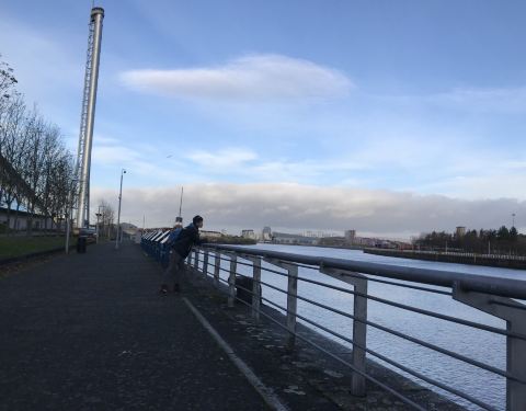 整个码头区域有很多的桥,不过相当一部分都是步行桥,可以看到很多人在这里跑步穿梭。靠近科学中心和格拉斯哥塔的这座桥虽然宽度不能和其他桥下面比,但这里联通科学中心这个儿童娱乐胜地因此人流量并不小,另一方面这里也是远眺塔和码头以及河口博物馆的最近处,因此吸引很多人来这里拍照取景