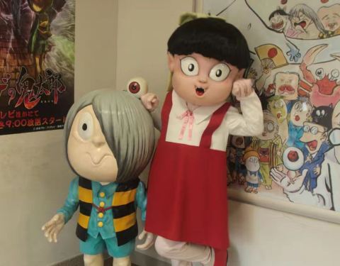 沿着水木茂大道笔直走大约10分钟就是水木茂纪念馆,里面展示着每个时代的漫画和动画作品,陈列着大量水木茂的冒险旅行和妖怪研究的照片和资料,还有水木茂先生的工作室和他的一生经历。馆内手稿区域是不能拍照的,除此之外都可以摄影,我们可能对这妖怪的世界不太了解,但还是被这些滑稽的妖怪角色深深吸引。从纪念馆出来又遇到鬼太郎,和另一个妖怪角色(我不认识哈哈哈),还给我搞怪,拍照挡着我,和老公合影还用脑袋顶他,笑死。