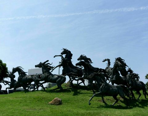 这是瓜达拉哈拉一家非常不错的植物园,这里有着大片的热带植物群,年四季都鲜花盛开,非常的漂亮。植物园内还有许多造型漂亮的雕塑,其中有一处是群马奔腾的雕像,有着非常强的艺术张力,很震慑人心。