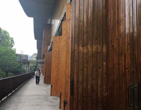 花莲的自由广场,就在花莲县邮局大楼隔壁,小小的一个广场,中间树立挺多的柱子,下方是实心的,上部分像亚克力,中间有气泡,也不懂啥意思哦