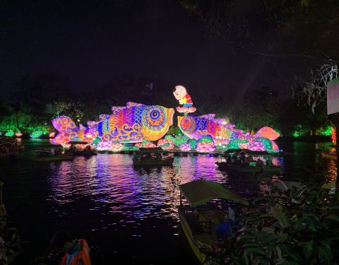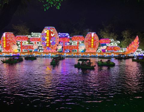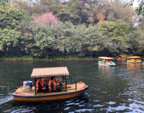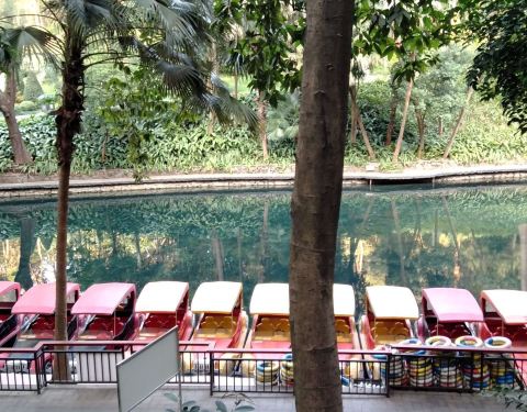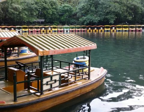 越秀公园游艇部地理位置不错就在广州越秀公园南秀湖边上,春节期间游人如织排队坐游船的比较多,公园举办一年一度的广州花灯节,坐在游船上一边惬意的泛舟一边欣赏湖边两岸五彩缤纷的彩灯,真是别有一番风情!