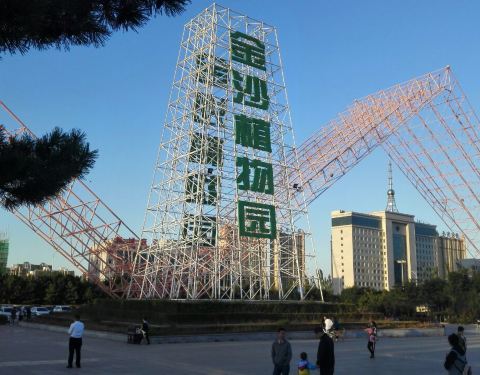 金沙植物园位于山西省朔州市朔城区鄯阳西街。交通 便利,西邻塞北烈士陵园,占地面积2600亩,总投资6.8 亿元。公园从2009年10月开始建设,截至2013年,已完 成2100亩景观绿化,形态各异、色彩丰富的小森林 、树丛、疏林灌草丛、林荫带等植物被运用,从而获得了稳定 多 样的植物群落景观。上层大乔木中层乔灌木,下层低矮花灌木、 地被及缀花草坪,丰美错落,韵律有致,呈现出植物王国的绚丽风貌。还建设了菊花园、月季园、海棠园等20多个品种园,栽植各种树木310万株,是塞北最大的植物园地,具备科研展示、苗圃生产、生态保育、科普教育和景观游览等多种功能,是山西省规模最大、植物群落最丰富、最具特色的城市公园。