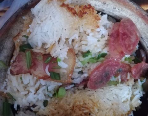 第一次吃柴火现煮的柴火煲仔饭,看上去做法还挺考验技术的,有点难度。店家手法闲熟老练还真有手艺,做出来煲仔饭特别特别好吃。真是给个一百分,米饭粒粒分明,饭焦不过火。刚刚好,香香的。尝一口,这是童年的...
