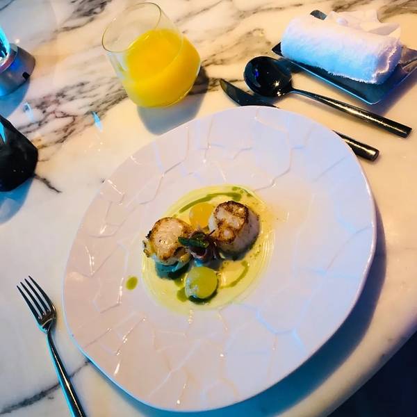 这次由于我去的比较晚,前面一桌撤了,服务员就帮我安排到了景观位,之前没预定到的,只是预定到了第三排,这里必须实名表扬Nancy,Amy这两位,一直尽心尽力的为我服务,不厌其烦的给我解说!北海道扇贝真的很嫩滑入味。Xo杂锦海鲜汤卡布奇诺牛肝菌蘑哈哈,刚开始哟吓了一跳,但是真的很好喝,上面的白泡沫是奶泡。还有很多很多的菜品,都做的非常的好,尤其是还有第一次吃到的蓝龙虾,真的是太棒了,非常非常的满意~