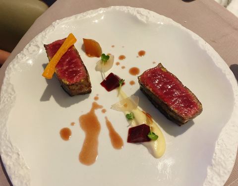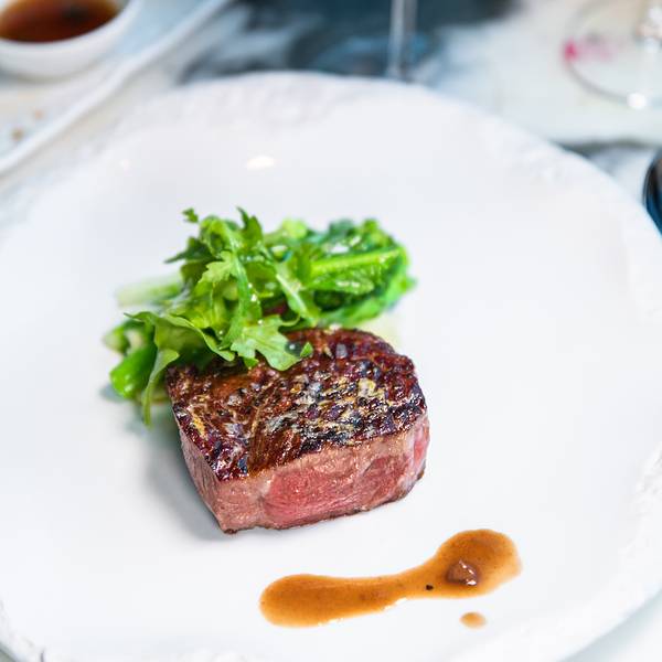 - 主菜点了份牛排,牛排是M8的牛肉,这里的服务员推荐我三成,没想到的是,口感真的不一般,很不错