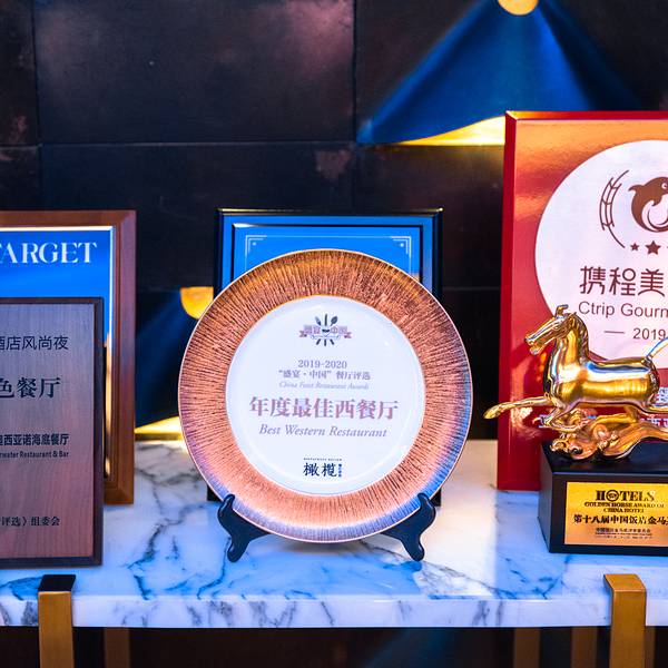 探店三亚必打卡餐厅——人均最高、国内最大海洋餐厅“亚特兰蒂斯奥西亚诺”,与八万余尾海洋生物共进午餐。最具“打卡”诱惑力的奥西亚诺,无疑是资深吃货、蜜月情侣、高端度假的不二之选。Ossiano是希腊语,源自...探店三亚必打卡餐厅——人均最高、国内最大海洋餐厅“亚特兰蒂斯奥西亚诺”,与八万余尾海洋生物共进午餐。最具“打卡”诱惑力的奥西亚诺,无疑是资深吃货、蜜月情侣、高端度假的不二之选。Ossiano是希腊语,源自英文Ocean海洋。设计灵感,来源哲学家柏拉图每天上午11点,当这道章鱼形状齿轮造型传动门缓缓打开时,也预示着今日份限量的世界一流海鲜盛宴将为你呈现,神秘感油然而生;一段灯光昏暗的弧型通廊,餐厅所获荣誉陈列于此。再巡步深入,金色珊瑚状吊顶的酒吧台位于左侧,梦幻蓝带状核心区域景观餐位拥入眼帘……水母造型单人靠椅、球形钓鱼灯、若隐若现的水母灯,无不彰显海底世界元素。落差数十米的太阳光透射水族馆,反射在餐厅每一处角落,光影斑驳,鱼群所到之处,游光浮影,十分梦幻。餐厅分景观位包厢两个、观景式包厢一个,两人、四人位与幕墙弧线平行分布,高低错落,视觉舒适,社交距离也很不错。与万尾海鱼干杯,品一流海鲜美味。这是餐厅最大特色。鱼群在餐桌旁游弋嬉戏,举杯与鱼群共饮,壮观无比、惊喜万分,你永远不知道鲨鱼在你“肩膀”掠过,你却在品尝它的最爱,那种奇妙感觉,无与伦比。餐厅主推终极美食盛宴,以主菜、海鲜或肉类、意面和汤、甜品、配菜为点单品类,颇具西式海鲜大餐的特色。菜单分豪华午晚、终极午晚各两种,主要区别于酒饮配置。头盘:香草法式鸭肝汁,细腻无比,不过略有一些味儿,总体料理不错。配上三角形烤吐司,回味无穷。主菜:豪华海鲜拼盘分冷盘和热盘,我选的热盘波士顿龙虾,非常美味,活鲜炭烤,鲜嫩无比副菜:亚式香草鳕鱼佐黑松露意式饺子,鳕鱼煎香入味,口感明显,口味细腻。饺子汤汁鲜美,入口醇香。黑安格斯西冷牛排,有机时蔬配小番茄与三分熟西冷牛排,咀嚼感与清爽感更好。甜品:流浪地球,造型独特,蔚蓝色与海蓝色相得益彰,揭开内有惊喜,曼特尼巧克力奶油、红桑莓果胶,加上蛋黄和能量条、蛋糕,喜爱甜品的,必将给味蕾极致体验。桂花飘香,奶白色桂花意式奶冻,淋上红色草莓汁,颜值很高。苏打蜂巢糖和紫苏冰激凌,口感清爽、干净,口味甜怡适中,令人餐后食欲再一次大开服务员会为在座的客人,拍照留念。海鲜拼盘陪上的柠檬水贴心。服务员侧鞠45度姿势很标准。忙碌了一天,都还没有来得及给酒店来一张全景~此刻月亮已经升的比较高了。不过,酒店内部,灯光非常迷人~