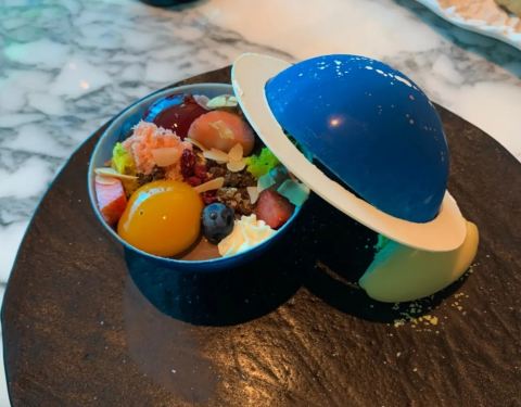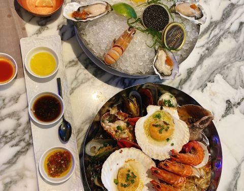 【口味】特别棒,海鲜拼盘不错,特别是海鳌虾,还有螃蟹,没想到的是居然还有鱼子酱,不过这只是第一道菜喔~份量特别足,吃完海鲜拼盘都饱了。 主菜点了份牛排,牛排是M8的牛肉,这里的服务员推荐我三成,没想到...【口味】特别棒,海鲜拼盘不错,特别是海鳌虾,还有螃蟹,没想到的是居然还有鱼子酱,不过这只是第一道菜喔~份量特别足,吃完海鲜拼盘都饱了。 主菜点了份牛排,牛排是M8的牛肉,这里的服务员推荐我三成,没想到的是,口感真的不一般,很不错。 甜品最喜欢流浪地球,拍照也特别好看,是个星球,很惊喜,而且里面还有一些水果和蛋糕,颜值与独特口感并存~ 【环境】环境当然满分啦,跟一群鱼儿吃饭,有很多不认识的鱼,服务员小姐姐都认真给我们介绍,还能认识一些我不认识的鱼儿🐟嘻嘻嘻,可爱的海龟和懒惰的鲨鱼~🐟环境优雅,体验nice~ 【服务】这里的服务真的很好,服务员能及时给你更换盘子,问你菜品口味,还时不时过来倒饮料,添加酒水~还能帮忙拍照留念,不仅仅用我们手机帮忙拍,还有用他们店里的拍立得,真的很nice,用餐体验很棒,还有就是,服务员小姐姐拍照特别专业哦~💕