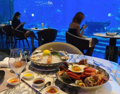 可享受环礁湖水族馆视觉盛宴的海底餐厅。