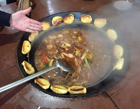 这次去成都玩,要不是温江的朋友带去这家位于芙蓉大道的柴火芋儿鸡店,是不会品尝到用土锅、土灶、柴火烧的鸡。柴火鸡的做法是放花椒、干辣椒、香料等佐料把鸡块炒香,放芋儿、土豆、豆角、魔芋、笋、粉条等辅料,再加水盖锅焖熟,然后贴上一圈锅边馍,接着就可以开吃了。鸡肉麻辣香嫩,非常入味,各种辅料也很好吃,再搭配着锅边馍,美味极了!
