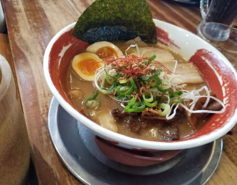 拉面店,日本的拉面都偏咸,这家也一样,拉面不像国内的拉面感觉有点像方便面。不过汤头和料比较足,吃完还是感觉有点咸,生意不错一会门口就排队了。
