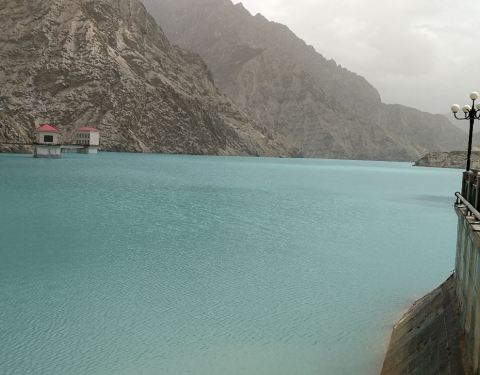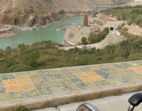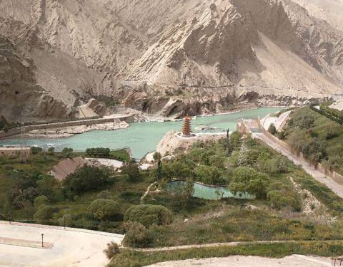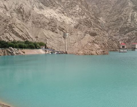 昆仑山复地的发电站,人造湖泊,喀拉喀什河上游,位于海拔1906米的地方,水蔚蓝色清澈景色优美安静
