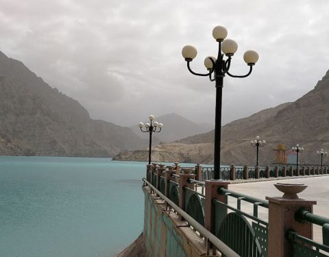 今年新疆普遍缺水,所以作为一个水利大坝的景区,肯定是很惨了,水位非常非常的低,放水的场景想都不用想了
