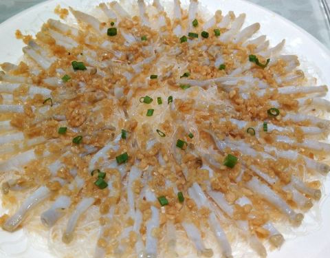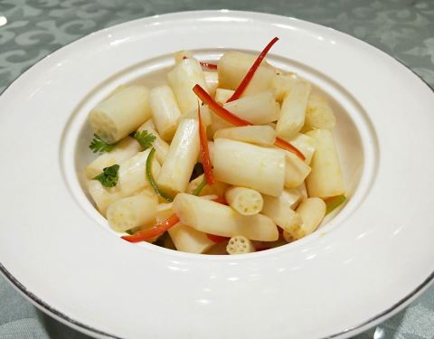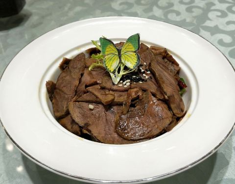 有朋自远方来,不亦乐乎…南京必游的景点之☞中山风景区一圈逛下来还真是有点累,吃饭也不想走太远,琵琶湖附近选的这家:悦涧餐厅,一排独栋,通透的玻璃窗可以观景~运气不错,订到了包间,包间大气宽敞有档次。 餐厅主打粤菜,看了菜单也兼有川菜菜品。菜品摆盘精致好看。 凉拌牛腱:菜品摆盘上的"蝴蝶灵动",牛筋腱肉片软而不烂,黑白芝麻增香。 藕断丝连:酸辣口的藕带,脆脆的清口开胃。 金蒜一口牛:大颗的牛肉粒一大口可以刚刚好,嫩香过瘾,蒜片杏鲍菇是炸过的,这道菜要趁热吃口感一级棒。 冰镇爽口八爪鱼:是某人的最爱,八爪鱼处理的很干净,吃时蘸上特调料汁,冰镇过八爪鱼尤其有嚼劲。 脆皮烤鸡,鱼头煲都是朋友喜欢的口味。 凉瓜排骨汤:吃完大菜喝一碗是极好的,微微苦的就是这个味儿。
