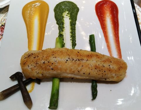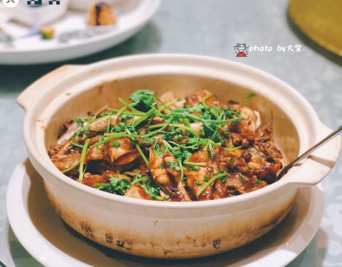 在城东,想请朋友聚餐吃饭,有熟人推荐了这家,相对比较隐蔽的餐厅,从明故宫下来一路穿过后宰门走进钟山风景区,立马空气变得清灵通透,满眼郁郁葱葱的绿色,身心舒畅。 餐厅的建筑非常具有现代感,若不是搜大众点评都不知道这是一家中餐厅。简直像一家西餐厅或者高级日料店。走进餐厅内部,也是很重的设计感! 餐前喝了好几款花茶和水果茶,那款可以变色的柠檬蜜薄荷茶简直太赞了,渐变色在抖音上好火! 各色凉菜中规中矩,印象深刻的是广东师傅做的鸡,肉嫩汁多,香气四溢,简直太好吃了!而朴素的咕咾肉在这里装盘也变得格外好看。 龙利鱼是西式做法,比较惹人爱,分餐制,吃起来也更加优雅了!第三次吃沙虫。前两次分别在厦门和北海,好东西!南京的餐厅绝无仅有的! 总的来说,这家非传统典型的粤菜餐厅真是太优秀了!除了鸡,那道酱烧的鱼头煲也是好吃到停不下来,鱼头肉被处理得非常到位!墨鱼饼也是我吃过最Q弹的。酱炒八爪鱼,调味丰富的牛眼粒,以及第一次吃到的椒盐海鸭,口感都很微妙! 菜量超级大,连空心菜都能这么好吃,也是非常难得了。师傅做的拉花杨枝甘露真是用心良苦!餐厅非常适合朋友和家庭聚餐,以及商务宴请 ,主要环境太棒了,喜欢死了!再远也愿意来!