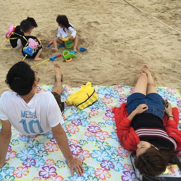 大人们铺上沙滩垫,躺在沙滩垫上看几个娃玩耍,不要太惬意……沙滩上躺躺走走~ 在这大过年的旺季,这样的海滩真的算是很少很少人了……