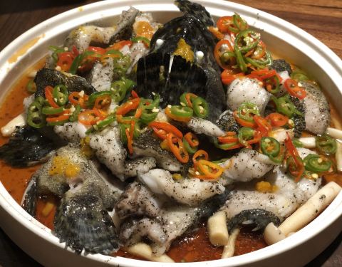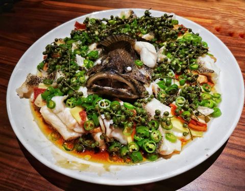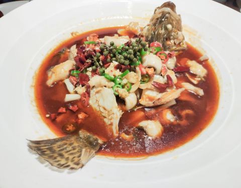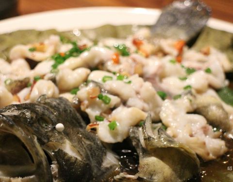 川式水煮桂花鱼,桂花鱼肉嫩白好吃。天山雪莲桂花藕,微带甜的口感相当的清爽,脆香