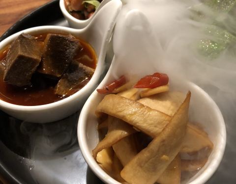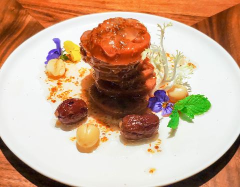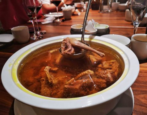 粤菜作为中国的代表菜系。以做法复杂,精细,费时费人工闻名中外。 位于国贸金融中心三楼的蒲舍,用创新的粤菜致敬粤味经典,重现粤菜创意味道,给食客带来满满的诚意。 餐厅风格精致优雅,店内有包间和雅座均可选择,在设计师巧妙的构思之下变得空间感十足,既有细节体现,又温馨舒适,还不失私密感。无论是商务宴请,朋友聚会,情侣约会都可以满足。 餐前水果,香蕉,苹果,芭乐配百香果,酸甜度适中,吃下去清新沁脾,口舌生津,味蕾一下子得到释放。 “宁可食无菜,不可食无汤”,可见汤在广东人心中的地位。 【茉莉菊花豆腐灼小蚌】汤品清爽小蚌Q弹鲜甜,日本豆腐宛若菊花在汤中绽放,刀功让人赞叹。一碗下去滋润清热,在这个湿热的天气里喝一碗在适合不过了。 【红酒鹅肝佐干提薄荷酱】看到它脑袋里就蹦出一个词“精美”!用糖做成的镂空外壳可观赏可食用,薄荷酱的搭配中和了鹅肝偏腻的口感,仿佛置身于一片清爽的自然之中。 【荷塘龙胆斑】好的食材就是要原汁原味才能体现,蒲舍在传统的做法上加入枸杞,红枣,木耳,党参和干荷叶一起去蒸,鱼肉吸收了这些食材味道,口感鲜甜滋补又养生。 【孜然金钱鳗佐薯片】鳗鱼切片炸至金黄,孜然和大蒜特有的香气混合在一起,配上酥脆的薯片,很适合下酒的一道菜。 【川式麻辣三件】牛腱,牛肚和牛筋很嫩,秋葵和木耳,是一道下饭菜。藤椒的口味不会特别辣,怕辣的人也可以放心食用。 对了,蒲舍使用的是小米电饭煲,而不是大锅一次性焖出来的,米饭粒粒分明软湿度正好,可见店家非常注意细节。 除此之外还有其他粤式料理可供选择,丰俭由人满足不同需要。