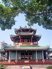 一个免费的景点,也有免费的停车场。有个很大的广场,大白天非常晒,我们去的时候不能进入揭阳楼内参观。揭阳楼像新建的,几层楼高,广场上有大鼎等。