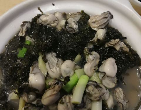 爆炒鲍鱼:炒过火了,基本咬不动,我们加了四只鲍鱼,220,认为海边这算贵,30。小卷还可以60。海蛎紫菜煲:紫菜嚼不烂,太老了!30听说这里还盛产紫菜!?