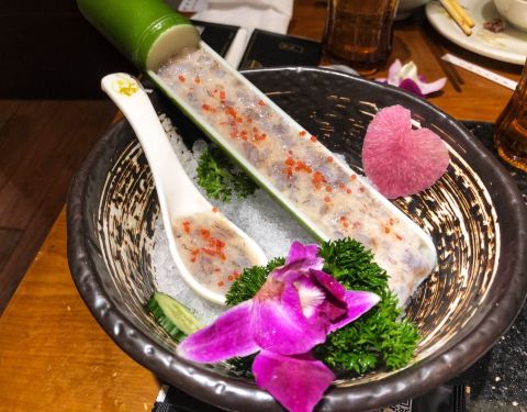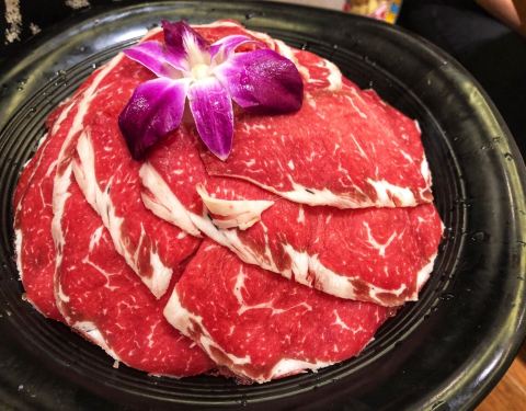 终于吃上传说中的 烤鸭火锅了~~第一百货感觉人不多,逛着清爽,吃饭不用排队,以后来人广首选~ 点烤鸭送锅底,选了猪肚鸡锅底~~ 烤鸭整只178元,先上了鸭皮,蘸糖吃那个,有种被浓汁温柔包围的感觉很满足~摆盘精美~~ 额外推荐鸭汤泡饭,鲜的眉毛掉下来~~ 前菜推荐:烧椒鹅肠,特别入味,爽脆,跟鸭肉包在一起吃也很好吃。 在他们家放锅的边上有一圈炉子,可以烤肉、煎蛋,也是一种新奇的体验,牛舌还是适合烤肉~ 特级肥羊和特级肥牛都是入锅即熟,3-5秒的样子~推荐~~ 熟食点了红糖糍粑和蒜泥白肉配面,面的味道特别赞,麻辣香~~ 手工虾滑也是熟得快,Q弹,人多的话,建议点2份~ 冻豆腐和蟹肉棒也蛮赞的~~下次带爸妈来这里吃烤鸭和火锅,一举两得~