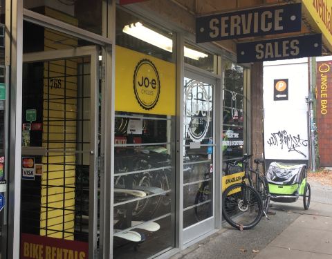 Denman街与Stanley公园接壤,所以这里密密麻麻很多租自行车的店。Jo·E Cycles的与众不同之处在于这个“E”-electric bikes,电动自行车。可租可买,有新有旧,安全头盔的选择也很多。