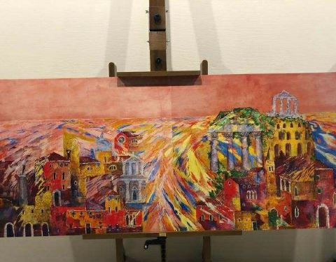 ...溜达一下,是日本画家绢谷幸二的画展,他很擅长用浓郁的油画展现风景和人物,里面还有3D的画展体验