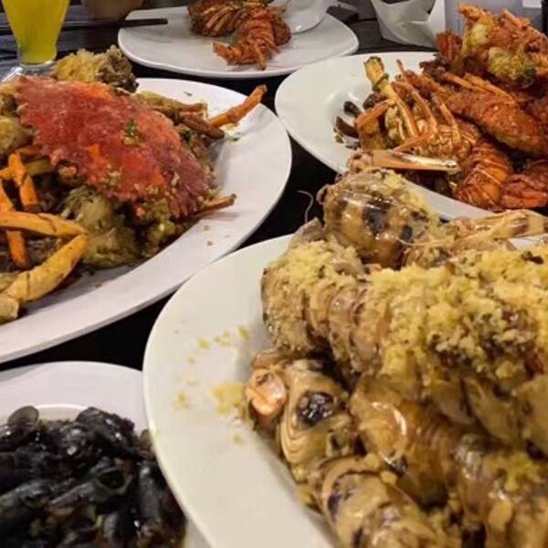 美娜多海鲜餐馆~来美娜多必来的海鲜餐馆 这里你可以尝到最美的海鲜,还有最美味的果汁。一本正经的把自己活成一个拖。 真的很棒啦~为什么这么说呢 首先说一下这个餐馆里面的地标打卡,也是我发的图一,大家可以看到这个是当时《前任三》最火的一幕喔~真的特别特别美,美娜多牌子后面就是全部都是海呀~饱了眼福,欣赏起来还可以票圈打打卡哈哈哈哈哈~说来也是很搞笑,那天刚来的时候下车的时候迷迷糊糊,现在这里愣是想了半天为什么这个牌子后面弄一个那么蓝的墙……(活生生把一片海看成了一堵墙~嗯那天天气巨无敌好)现在想起就回被自己笑哭🤣 反正那边拍起来可以出很多大片啦 既然是餐厅,我们还是要聊一聊重点餐饮菜品😄 我们当时去的时候点的菜都没有踩雷,都挺好吃滴!现在来一一介绍给大家。 菜品一:手臂一样粗的皮皮虾。不好意思,本人吃的有点多有点胖,没有很好的承托出这个皮皮虾的大,但是它真的很大!!!味道也很好吃,平时我们吃虾最讨厌的就剥虾,因为真的麻烦!但是这个皮皮虾就完全不用担心这个问题,因为她真的太大了哈哈哈哈哈😂,一次性剥虾,虾肉就全出来啦! 菜品二:我们点了蟹,它是那种脆脆酥酥的,怎么来形容她的美味?我们当时几个好朋友一起去玩的,我们是准备等菜上齐了拍完照再发的(会不会有朋友有强迫症哈哈哈)但是我们根本就没有忍住,吃的根本停不下来😂最后我们就拿了隔壁桌的图✌️ 菜品三:鱿鱼圈。嘻嘻好吃!吃起来不是那种很难咬很费力的,咬起来是那种嫩嫩的,Qq的,弹性巨棒! 菜品四:椰子鸡。他们这边盛产椰子啦,椰子鸡属于一道特别的特色菜啦,里面配的椰子肉好赞,值得一试。旁边桌的朋友没有点一个一个都来我们桌蹭哈哈哈哈 菜品五:鲜榨果汁。这是属于一道饮料甜点啦,他们真的就是纯鲜榨,我们点了西瓜汁,菠萝汁,橙子汁都很赞嘻嘻😜 点的菜挺多的,就挑了几个最喜欢的介绍给大家啦,介绍的这几个大家都可以试,绝对不踩雷系列! 他们家出来是有礼品区特产区的,礼品区可以买到《前任三》女主同款项链(我们当时188元买的),纯银的那种,比在导游手里买的性价比要高一点,很多人在导游手里买的一百多都不是银的。 题外话,喜欢吃榴莲的朋友看过来,在酒店附近有一个市场,那里的榴莲好吃又便宜,才15元一个✌️吃到你幸福到不要不要的那种。吃完榴莲怕上火,那配点山竹,一大袋才12!嗯,红毛丹10元一袋子!水果很便宜!!!