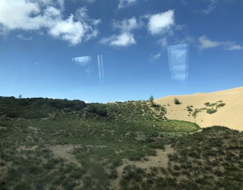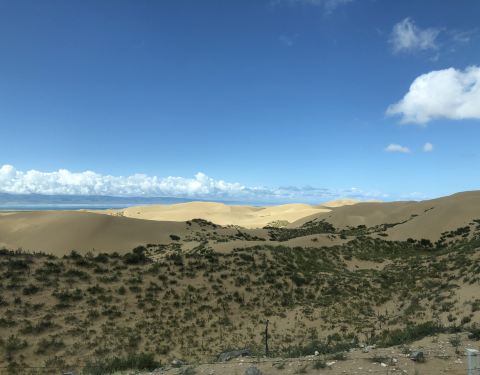 金沙滩沿途的风景的风景很美很漂亮,有大漠孤烟直上天的感觉,趣味性强,非常适合拍照的好地方,性价比超高的,值得推荐给大家。
