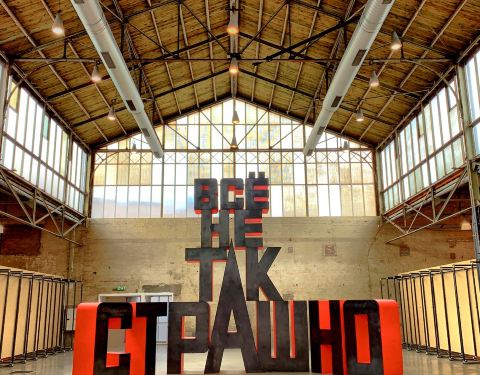 BPS22由玻璃和铁架建成的工业建筑艺术博物馆,沙勒罗瓦的历史遗迹和艺术宫店。 BPS22 is the art museum in an industrial building of glass and iron as a historic monument and Art Palace for the Charleroi