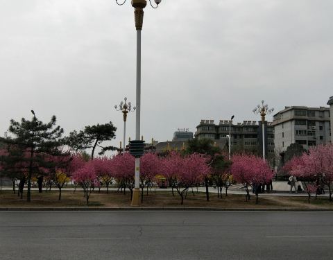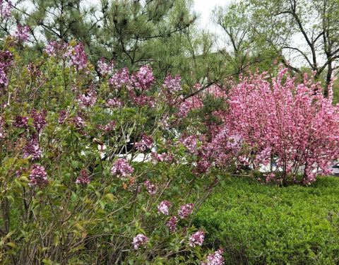 ...外围是条状绿化带公园,绿植花卉比较多,四月芳菲,榆叶梅,连翘,丁香相继开放,姹紫嫣红,非常养眼