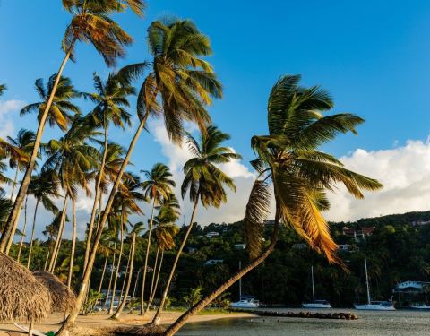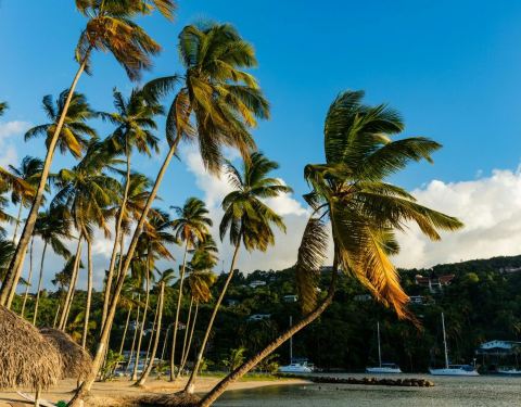 这里是卡斯特里最著名的海滩,海滩的一边种满着茂密的椰树,椰树的枝头随着海风来回摇曳,有着浓郁的海岛风情。这里的沙滩十分的绵长细软,踩在上面非常的舒适,绝对是不可错过的地方。