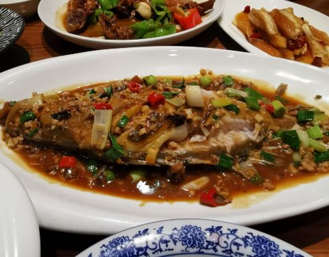 徽沅饭店也是新开的,在旁边是棋牌室,正好配套。上了二楼,饭店场面很宏大。大厅人满为患,包房不好定。是徽菜为主,凉菜也有一些是本帮特色的,是来到上海口味做了一些改良。它家特色是臭桂鱼,是从皖南运来的,鱼很新鲜肉很弹性十足。可能是供应量太大,腌制时间稍显不足,臭鳜鱼的肉一块一块的栗子状好喜欢。毛豆腐有铁板煎,也有油炸,感觉还是油炸的更香。皖南土鸡红烧确实好吃,是一只小公鸡,不肥不柴,好久没有吃到了。由于靠近东林路停车位有点紧张,可以对应的马路对面的小区