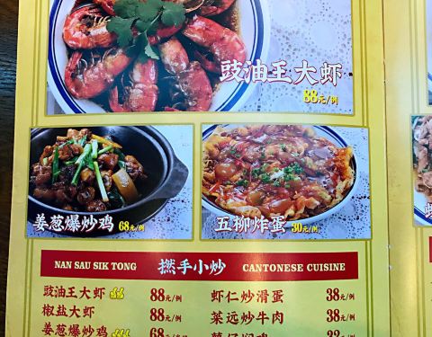 餐厅在星光城的一层,很好找,餐厅内有两层,二层相对清静。 茶餐厅装修风格,小方桌+小板凳,桌与桌之间靠得比较亲切。 菜品价格略高,贴合星光城的地段。 「南乳鸡翅」用南乳腌制,再油炸,本该是香脆鸡皮包裹着浓浓南乳香气的鸡翅,可是好咸,偏偏服务员没有勤快的加水,而且有的鸡翅是有淤血的雪藏鸡翅。 「马拉盏芥兰」热锅上桌的芥兰是去皮去叶的芥兰梗,都是芥兰的精髓。 粤式餐前小菜性价比较高,比较推荐。