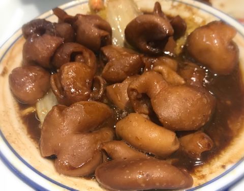 晚上同学聚会,选择了撚手食堂(珠影店)。因为这家餐厅开业不到半年,其中有位同学已帮衬了多次,这里差不多成为了他家的饭堂。 撚手食堂(珠影店)位于新港中路354号珠影星光城一楼112铺,离地铁客村D出口很近,附近有公交车珠影站,交通非常方便。 这家餐厅主打粤菜,不很大,有两层,装修得简约大气,迎合了年轻人的喜好,所以顾客以年轻人居多。晚去了就要排队等位。我比较喜欢餐厅墙上的一幅龙凤壁画,气势磅礴,栩栩如生。 【玫瑰酱油鸡】用个长方形的传统碟子上了,酱油鸡皮滑柔嫩,吃起来咸中带着甜味,鸡肉结实肥美。 【五柳炸蛋】这是该餐厅最多人点的一道菜。鸡蛋炸得金黄酥脆,酸酸甜甜的,下饭正好。 【豉油皇大虾】满满的一碟,虾的个头很大,很香很入味。 【酥炸生蚝】蚝很大只,非常新鲜,裹了蛋浆来油炸,炸得酥香鲜嫩,沾着酱汁吃更加美味。 【净猪肠】猪肠很多,处理得很干净,没有异味。吃起来入味、有嚼头。 【干炒牛河】牛肉很多,炒的很嫩,牛河镬气十足。 服务员不少,非常勤快,服务还是蛮到位的。