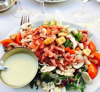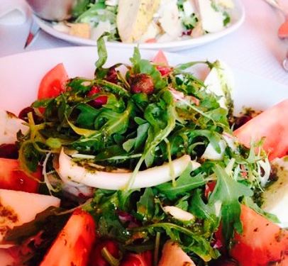 我们停下来喝了一杯葡萄酒,看着其他客人点的食物,简直太好吃了