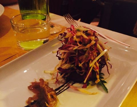 一家比较舒适的法式小馆,整体氛围显得非常舒适美好,当然他家做的菜也是很美味哦,烤鸭胸做的7分熟,标准配置哦,口味很适合我们亚洲人