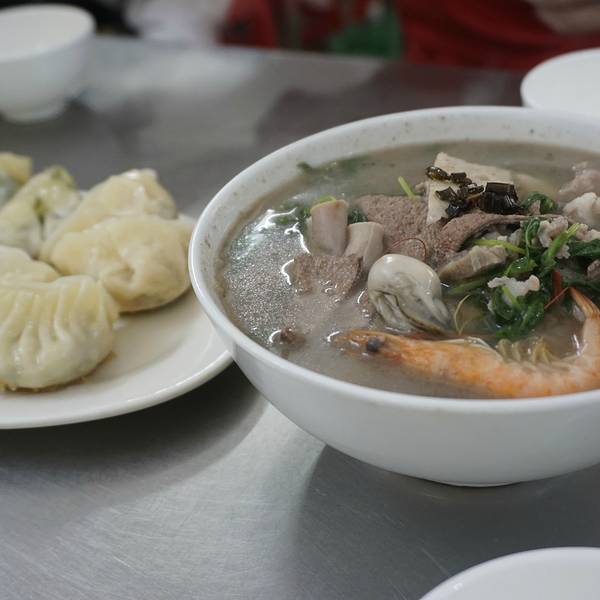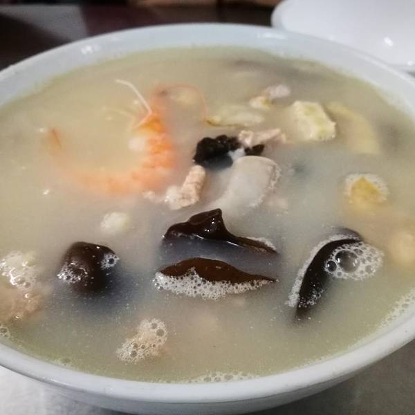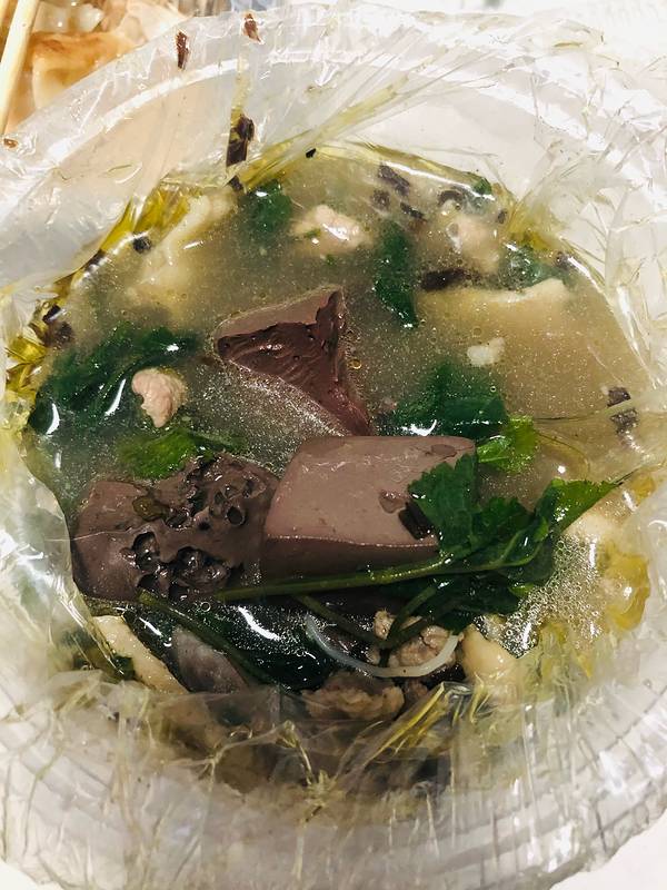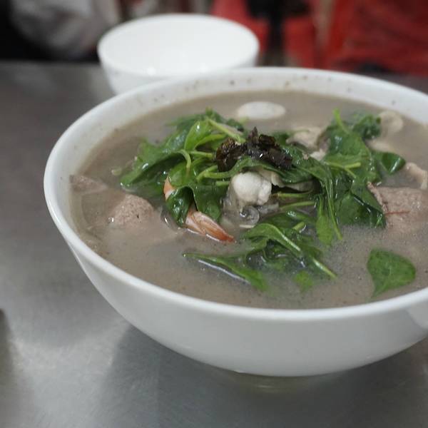 起来后就打车过去喝个小汤,那边靠近龙眼市场路况有点糟糕。 虽然招牌是猪血汤 其实是海鲜猪杂汤,他有4种蔬菜,自己选一个然后挑出不吃的东西,没有的话就全放进去。汤是蛮不错的,韭菜饺子好吃。 我们吃的期间...