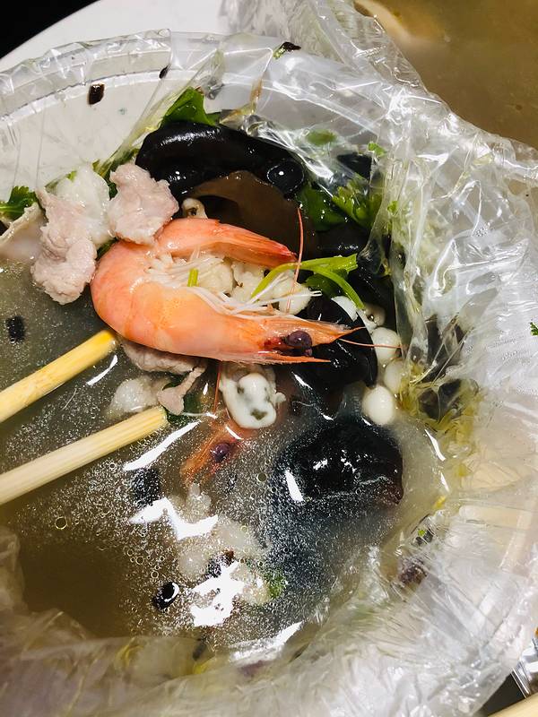 起来后就打车过去喝个小汤,那边靠近龙眼市场路况有点糟糕。 虽然招牌是猪血汤 其实是海鲜猪杂汤,他有4种蔬菜,自己选一个然后挑出不吃的东西,没有的话就全放进去。汤是蛮不错的,韭菜饺子好吃。 我们吃的期间一直外卖不断,店内就几张桌子很容易就满人了。 汤15/腕 饺子 7元/8个 14元/16个