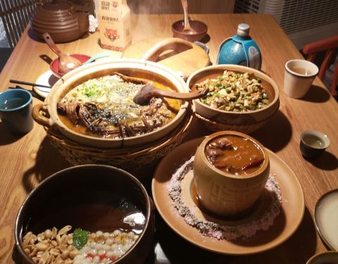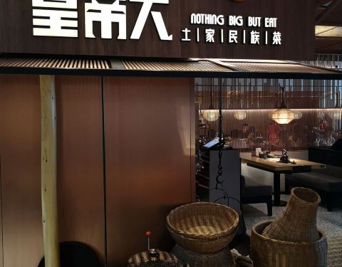 长沙美食探店~吃饭皇帝大 解锁2019长沙必吃榜收藏 作为长沙当地人的朋友墙推。 【坐标】解放西路318号夜界FunnyMall4楼。 “吃饭皇帝大”这是一家土家特色民族餐厅,店名寓意很有意思~吃饭皇帝大,即吃饭比天大,比什么事情都重要。俗话说“民以食为天”,吃饭二字大于天。吃饭皇帝大也是对所有食客的命令性暗示语,腹中空空时,放下一切事,先吃饭。 店内追求原生态的食材。 【环境】店内的装潢颇具民族气息的古朴感,但又不失现代化的时尚感,各种绿植、土家族老照片和土家族帽子造型的灯,仿佛步入土家村落。 店内特色…… 在餐桌上有多个电磁炉,可直接在餐桌上烹煮食物,也可保持菜品的温度。 直接拿着扫码器对着菜单扫码条直接点单,第一次这样点单,赶脚特别新奇特别方便。 服务员统一土家民族服饰,上的茶水也是土家风味的茶水。 【柴火稻草鱼】稻草捆着鱼烧制而成,份量给力。鱼肚子颇有特色,上菜后服务员会帮忙用剪刀✂️发现包有糯米~鱼肉鲜嫩细腻,糯米软糯入味,配菜千张也是非常入味好吃的,很有创意的一道菜,可以说每桌必点。 【罐罐牛腩】伴随着“阿哥阿姐,上罐罐喽”的吆喝声端上桌,先在罐罐四周点火,等熄灭念一段开罐“咒语”敲敲打打开罐,真的超有仪式感店员,小罐罐一打开,浓郁的香味扑鼻而来,大块份量给力的牛肉、牛筋炖的软烂入味特下饭,吃饭的时候夹上两块牛腩浇上汤汁,一碗饭秒吃完,现在想想口水直流。 【西施豆腐丸子】外酥里嫩的口感,吃的时候觉得蛮有嚼劲的,吃的时候蘸入店里秘制调料,味道觉对nice。 【土家桂花红糖凉粉】份量给力好大一碗,解辣解暑圣品~颜值甜品,晶莹剔透的冰粉口感爽滑➕软糯的小圆子+香脆的➕桂花清香。 【猫儿山的小黄牛】现炒的牛肉特别鲜嫩尤其搭配秘制辣酱➕清脆可口的西芹,肉汁醇厚,与米饭绝配。 【土家甜糯米酒】甜甜的特别好喝,虽说酒味很淡,据店员介绍度数很低,可是对于喜欢喝酒又不会喝酒的我来说,还是喝上几口就觉得脸发热,这种微醺的感觉特好。 还是7月底去吃的,当时消费了多少,也不大记得了。