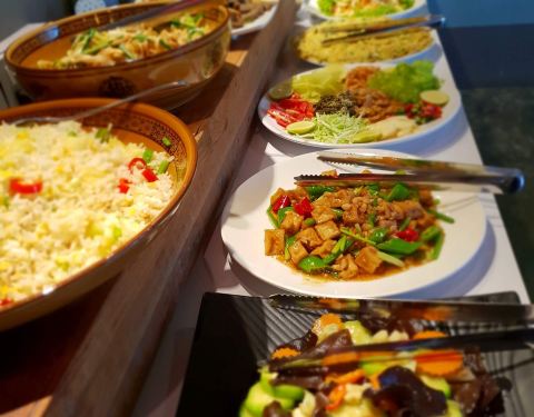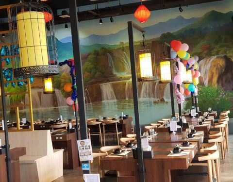 这是仰光一间隐藏的美食。 位于47街中段的大楼内,没有招牌,大楼外有800碗餐厅及KBZ银行。进入大楼往里边走,会看到小小招牌写着JIN HOT POT 然后就是一大片的玻璃门窗,让人眼睛为之一亮。 里面是自助式的小火锅,汤头是台式的,有熟食、甜点、饮料、食材特新鲜,中国式建筑风格。 肉类是现切肉,所以现叫现切,廷新鲜的、还有供应河虾、鲜鱼,是在仰光少数质量新鲜的店家。 饮料是花茶,有别于其他火锅店的可乐汽水等。 酱料很多,有芝麻酱、花生酱、店家特制酱料…等十多样。 还有素食,蔬菜特新鲜,有冰淇淋、爆米花等。 是一间性价比很高的店,收费便宜,人民币在55元,就全部吃到饱了~~ 很推荐吃吃看,整体感受挺好的