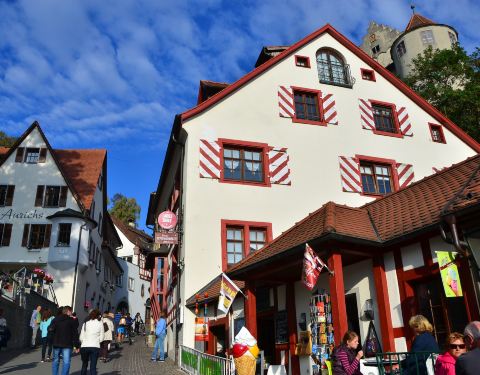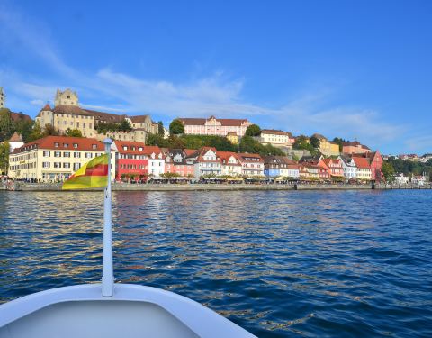 梅尔斯堡紧挨着德国最大的湖泊----博登湖。城里的小房子扎根在面湖的山坡上,上下错落,疏密有致。石板铺成的接到两侧是木制房屋和有五彩缤纷的居民住宅,让人感觉置身玩具之城。