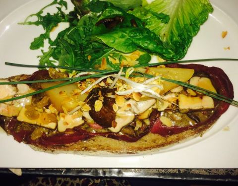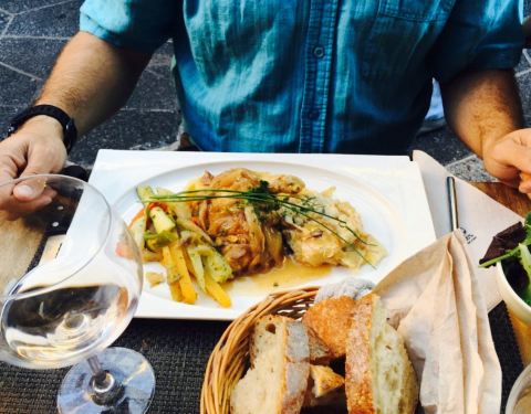 不小心转悠到了这条安静的街上,简直就像发现了一个大宝藏。去很多地方旅游过,只有这个地方最让我动心,尤其是今晚来的这家餐馆。首先自家酿的酒就很让人动心,还有蘑菇,伯爵茶,烤面包,蔬菜沙拉和鳕鱼。